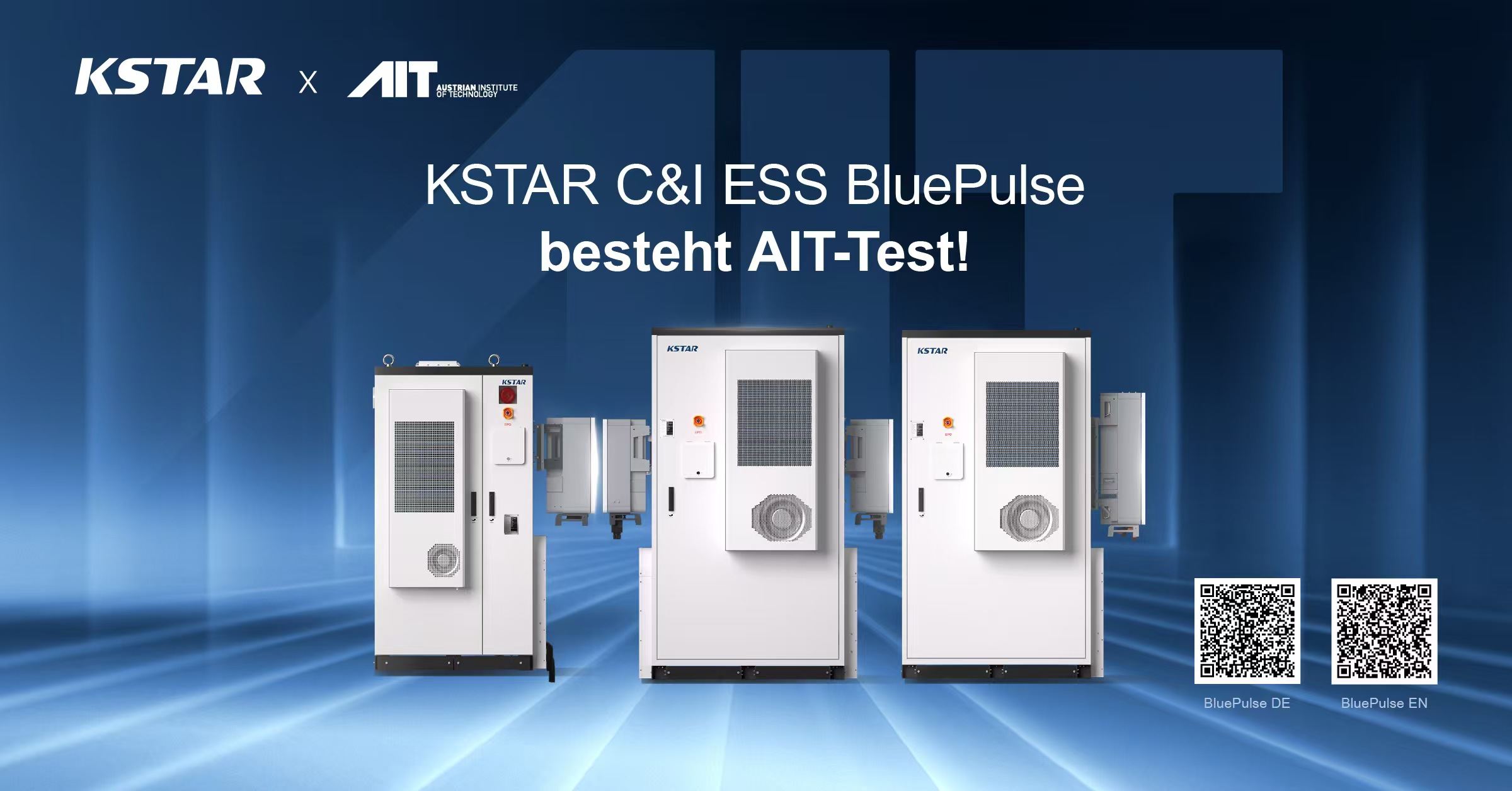 KSTAR freut sich, bekannt zu geben, dass die BluePulse-Seriedie umfangreichen Tests am Austrian Institute of Technology (AIT) erfolgreich bestanden hat. Diese Zertifizierung bestätigt die Zuverlässigkeit und Leistungsfähigkeit des Systems nach europäischen Sicherheits- und Qualitätsstandards – ein wichtiger Meilenstein auf dem Weg von KSTAR, hochentwickelte und vollständig zertifizierte Speicherlösungen für den gewerblichen und industriellen Markt bereitzustellen.
